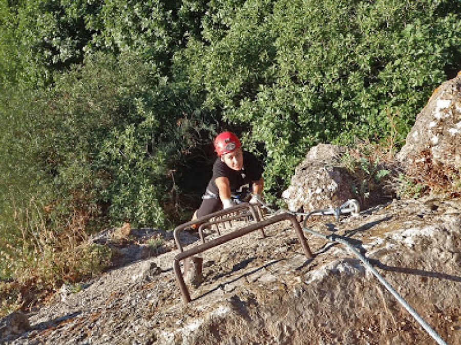 Vía ferrata del Tajo de Ronda , enclavada en un lugar privilegiado, ideal para iniciación, fácil pero muy emocionante. La Vía ferrata del Tajo de Ronda se utilizó por los obreros de la Sevillana en los años 20 para sujetar los tajos con muros de mampostería, con los que proteger los Molinos y las acequias de agua de la zona. Ahora Al Andalus Activa la ha reciclado y adaptado para el turismo de aventura y activo. Se le conoce también como vía ferrata de Ronda o vía ferrata de Málaga. Ideal para realizarla en familia (desde los 8 años).